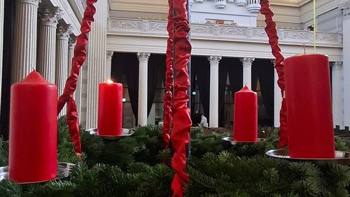 Der Kranz hängt und die erste Kerze brennt. Wie jedes Jahr wurde unsere schöne Kirche noch ein Stück schöner durch den jährlichen Adventskranz, der diesmal besonders groß und hell in unserer Kirche aufleuchtet. Zudem ist wie jedes Jahr an jedem Adventssonntag ein Gottesdienst. Jeder sollte mindestens einmal erleben, uns der Kranz und die neue Kerze an etwas erinnern: an die Liebe, Wärme und Glück von Weihnachten. Der Kranz ist wie ein Countdown zu den Tag der Freude und des Glücks.